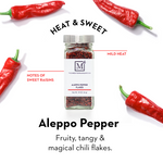 Aleppo Pepper, also known as Halaby pepper, is a magical spice of fruity, tangy chili flakes. The mild heat gives off a raisin-like flavor or a sweetness akin to the best kind of sun-dried tomatoes, unlike other chili pepper flakes. It can be used as a flavor enhancer, similar to salt, to add a special Mediterranean flair to your meals.