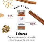 Baharat (Arabic for “spice”) is a warm, fragrant blend of spices commonly found in Middle Eastern and North African cooking. It's used as an all-purpose seasoning in these regions due to its versatile flavor profile accompanying grilled meats (especially lamb), stews and soups, sauces, and roasted vegetables. Our spice blend is both sweet and spicy, and features cardamom, coriander, cinnamon, paprika, and more.