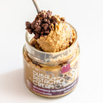 An all-natural, Dubai-inspired spread made with Mediterranean pistachios, Middle Eastern Kataifi pastry, and Sicilian Modica PGI chocolate, creating a multi-texture indulgence in each spoonful.
