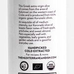 Koroneiki Organic Greek EVOO: Our Greek Extra Virgin Olive Oil comes from the area of Kolymvari on the western coast of Crete and is produced from 100% organic green Koroneiki olives.
